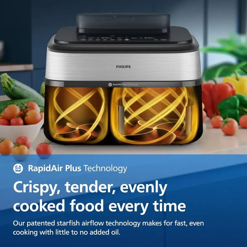 توان بالا، تکنولوژی Rapid Air و برنامه های پخت متنوع باعث می شود غذاها سریع، یکنواخت و ترد آماده شوند.