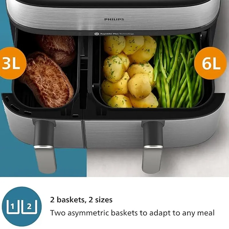 سرخ کن فیلیپس NA555 یک Airfryer قدرتمند، دیجیتال و مناسب خانواده های متوسط تا پرجمعیت است که با تکنولوژی گردش هوای داغ، غذا را با حداقل روغن، ترد و سالم آماده می کند.